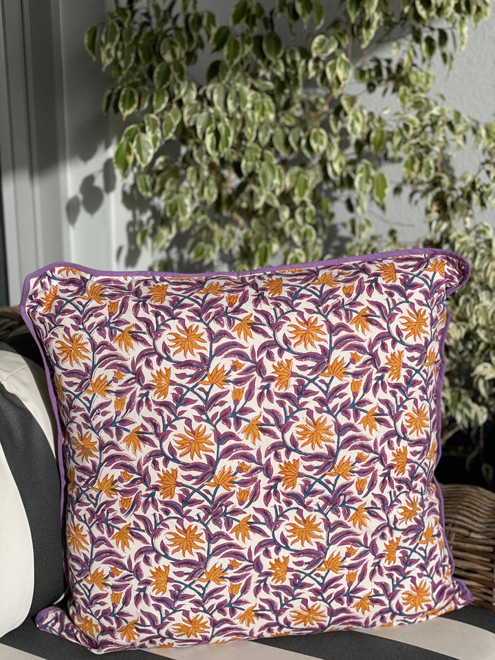 This 60 x 60 cm cushion cover is crafted from 100% cotton and features intricate block printing on both sides. Designed with a concealed zipper, it offers easy insertion and removal of cushions while maintaining a polished look. The breathable cotton material ensures durability and comfort, making it an elegant and practical accent for any living space.