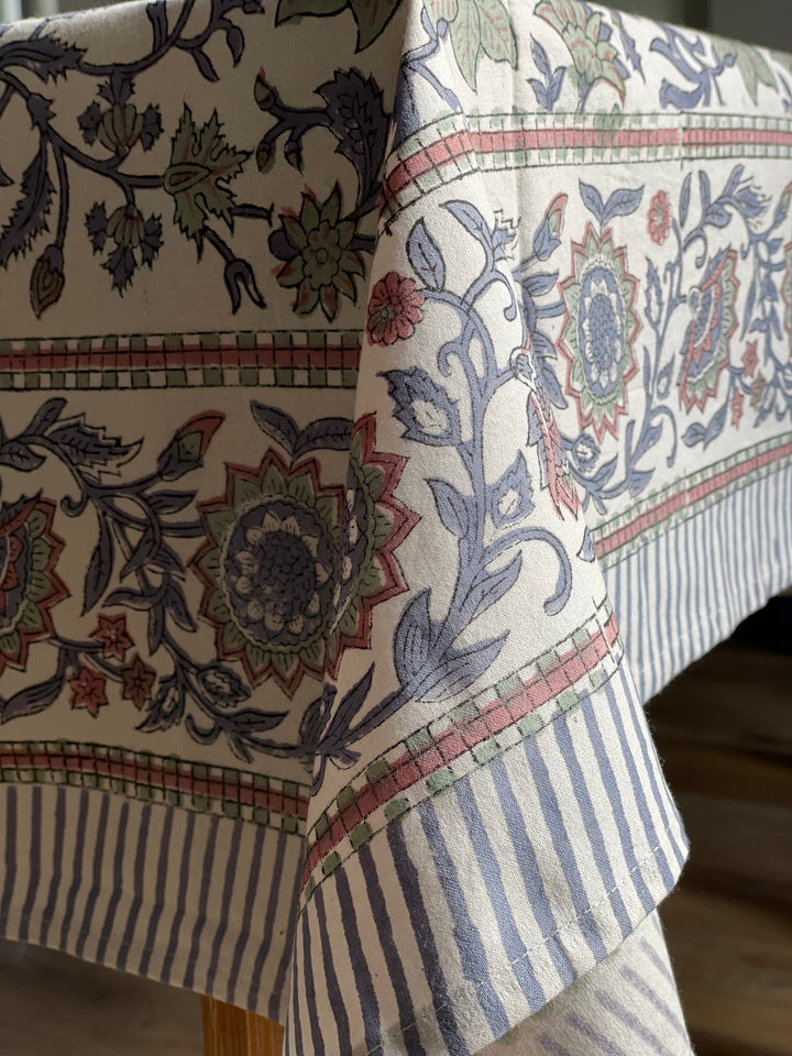 Bring a touch of heritage and elegance to your home with this handmade block printed cotton tablecloth – where tradition meets modern dining.